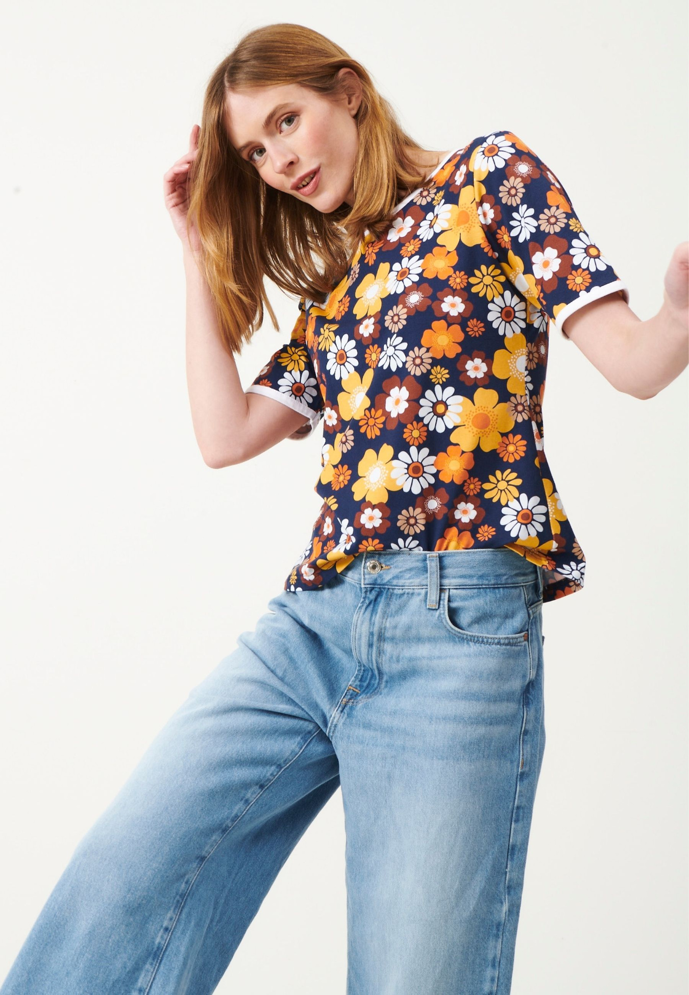 Edith is a patterned top with a lively floral print that gives it a playful, retro-inspired look. It features a straight and comfortable fit with a round neckline and short sleeves finished with contrast trim. The simple silhouette makes it easy to wear and easy to style!